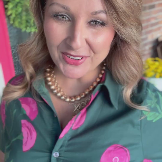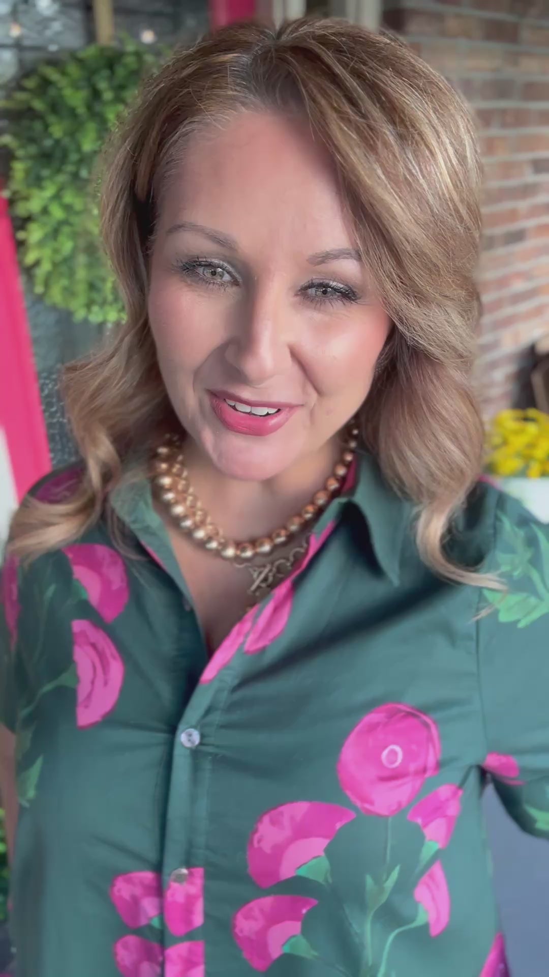 Floral print short sleeve midi dress featuring button closure at front. Side pockets. Lined. Woven. Non-sheer. Lightweight.