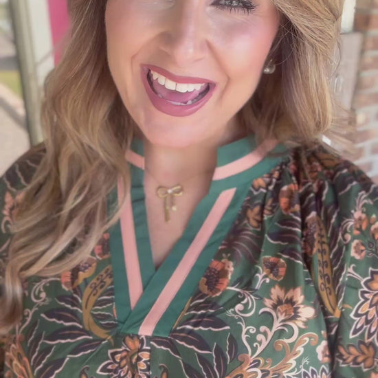 Floral Damask Print Collared Dress