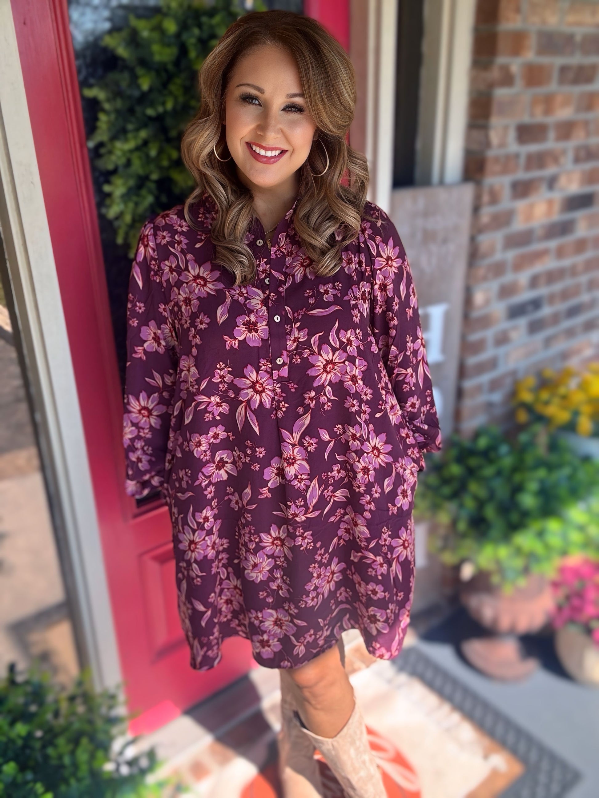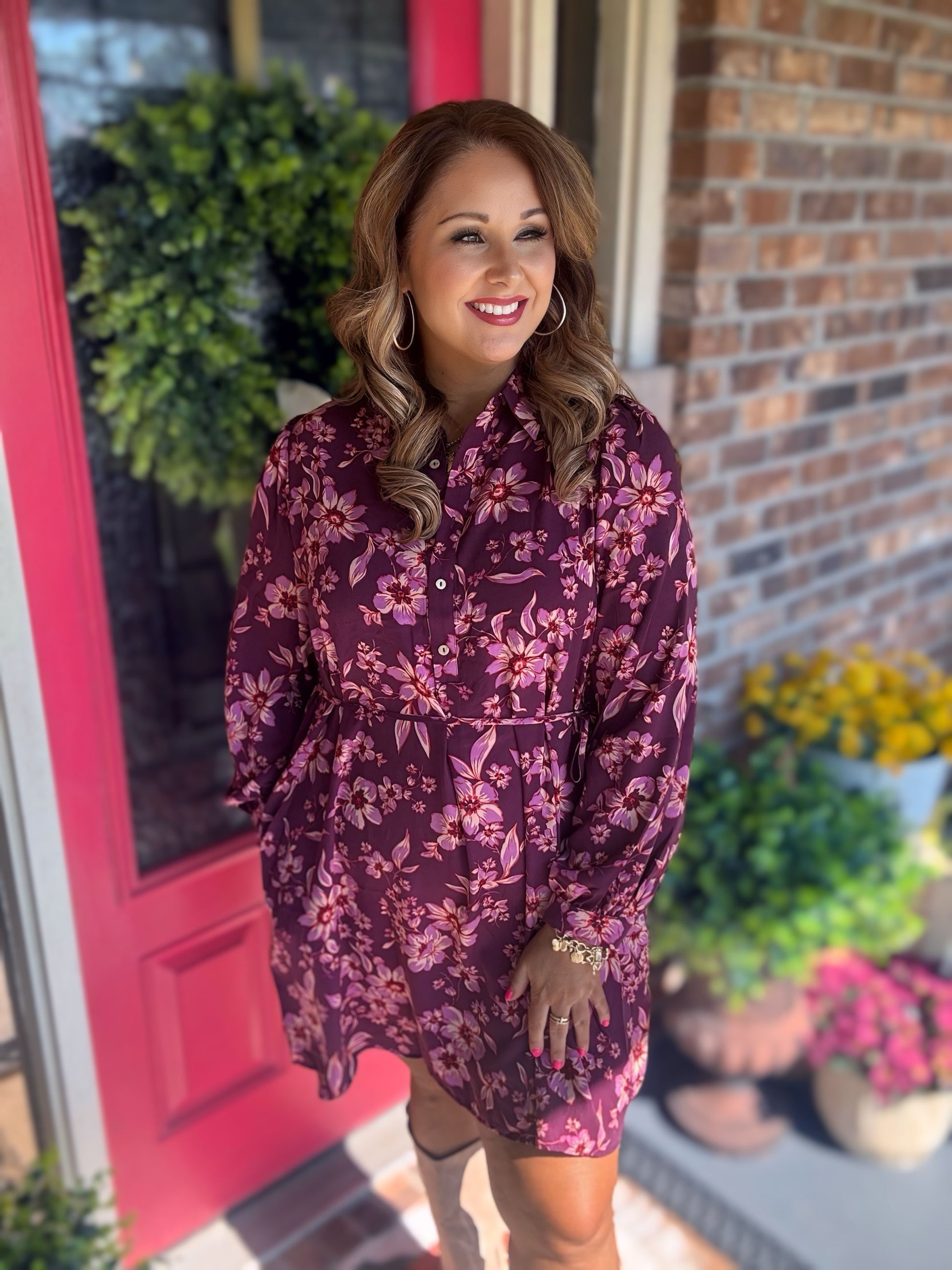 Description: FLORAL PRINTED SOPHIA WOVEN BUTTON FRONT DRESS