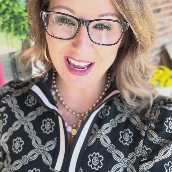 • Split neckline with striped trim detail