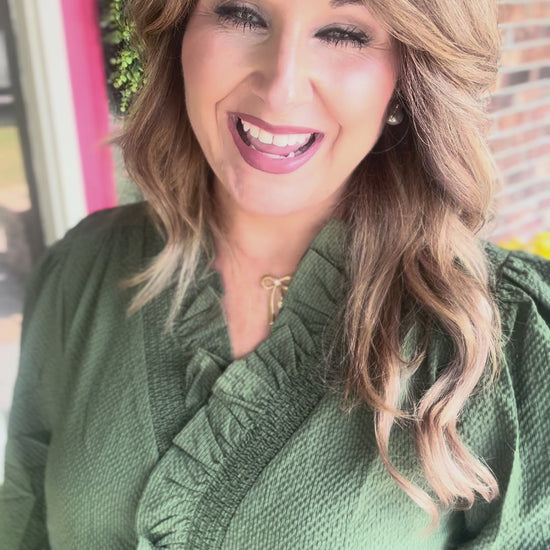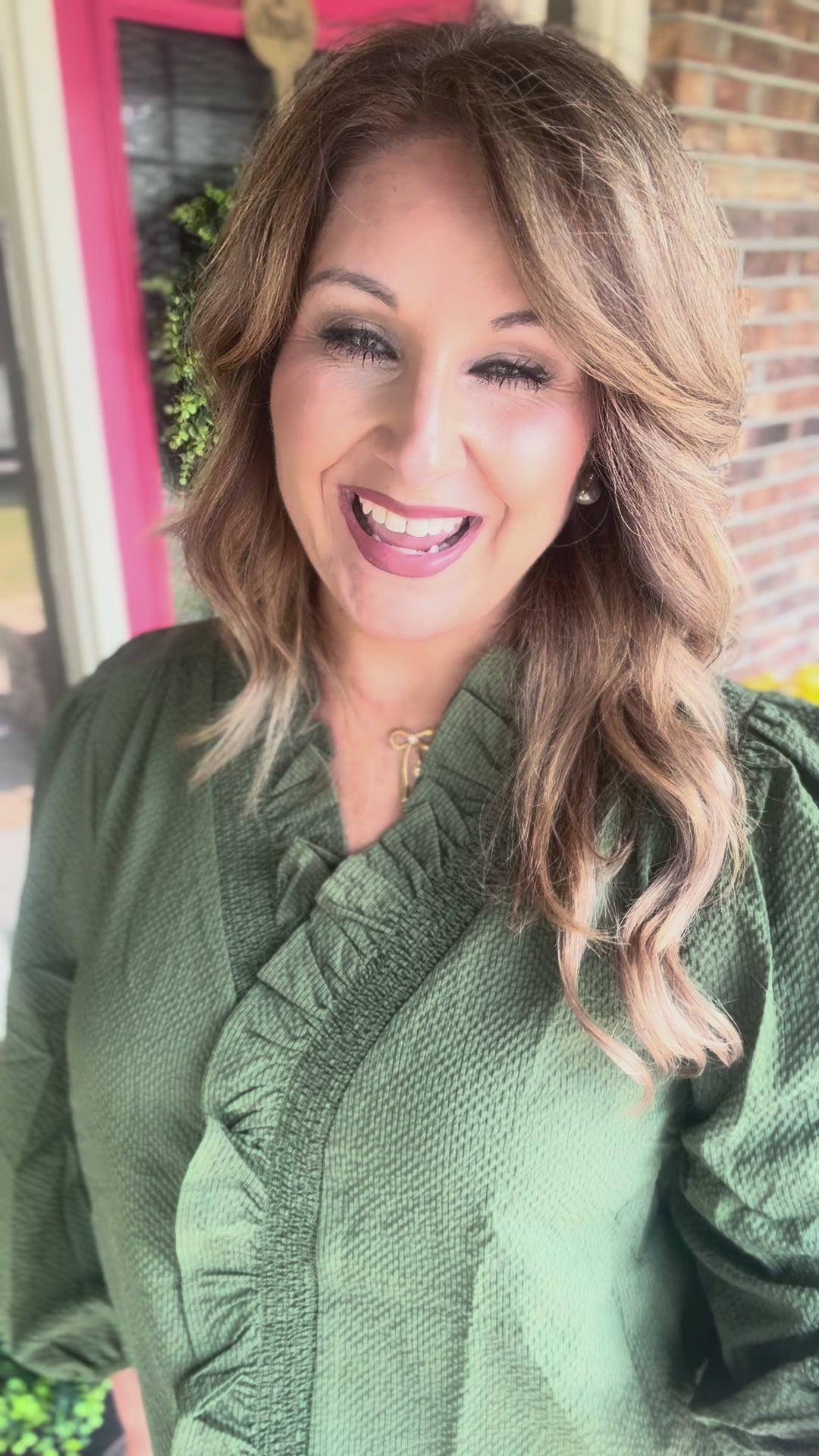 Textured Ruffle Trim Blouse with 3/4 Sleeves